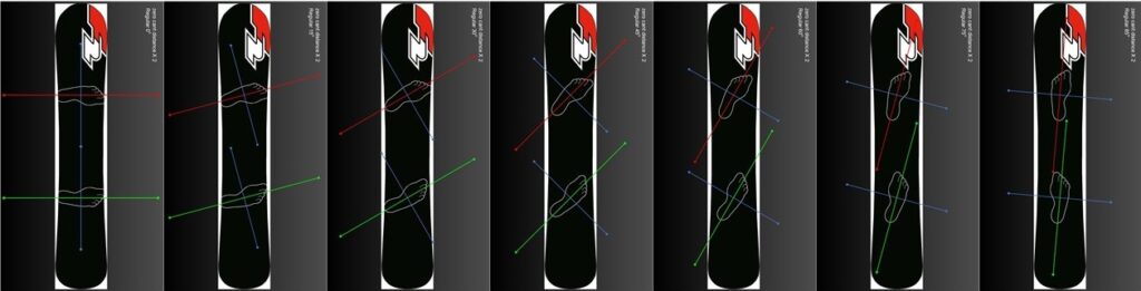 GOALS: Each boot cuff should be aligned with the rider’s lower leg when the rider stands in their preferred stance distance and binding angles as if they were riding base flat and in a straight line.