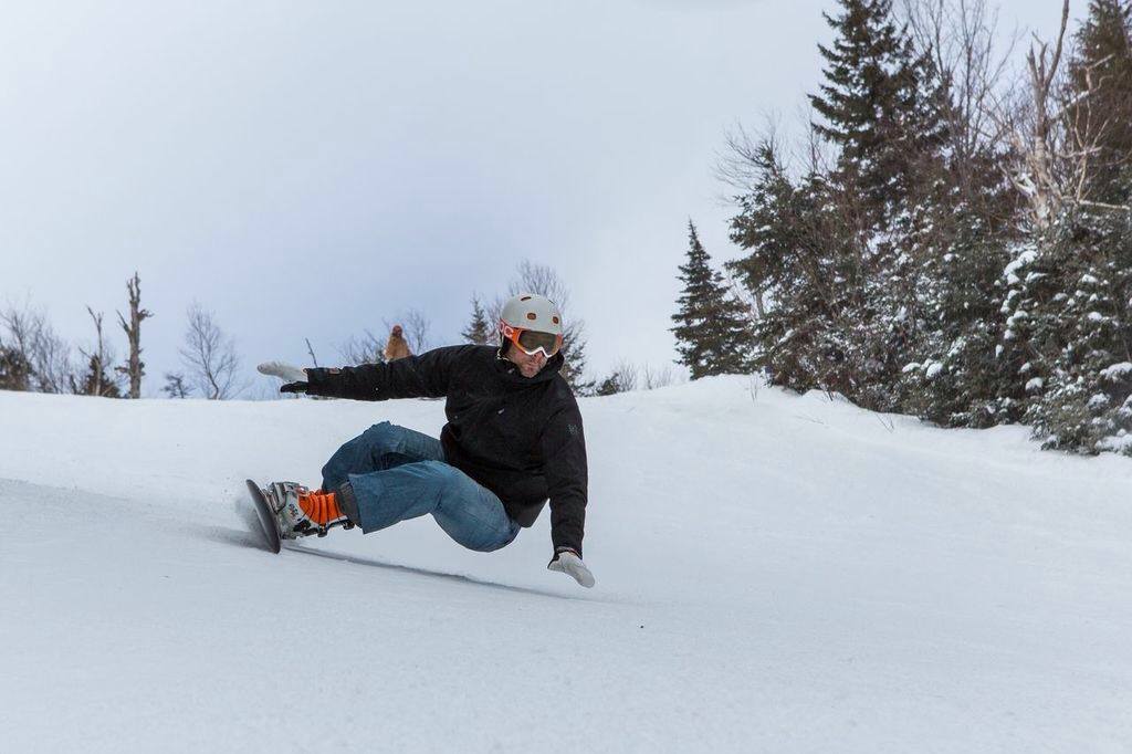 So if your heelside carve is obviously your stronger carve, try the toeside hip-drop. First you need to make sure you’re not rotating your hips slightly towards your toe edge. At a heel-to-toe transition, take your back hip (right hip for regulars, left for goofies) and bring it forward. Think about putting it just in front of your back foot. Then, drop that hip down towards the snow and into the toeside carve. Do this before any movement of your hands, head or shoulders towards the snow. Concentrate on “pencil pinching” (as mentioned in other articles here) to keep your upper body upright – that is, you should feel like you could hold a pencil in the crease that forms between your downhill hip and rib cage. Stomp the front foot to start the carve, then smoothly shift back as the carve comes around, finishing the carve with your weight about two-thirds on your back foot. When you master the hip drop and combine it with quick cross-through transitions, you’ll probably find that confidence on toeside that you’ve been enjoying on heelside all this time.