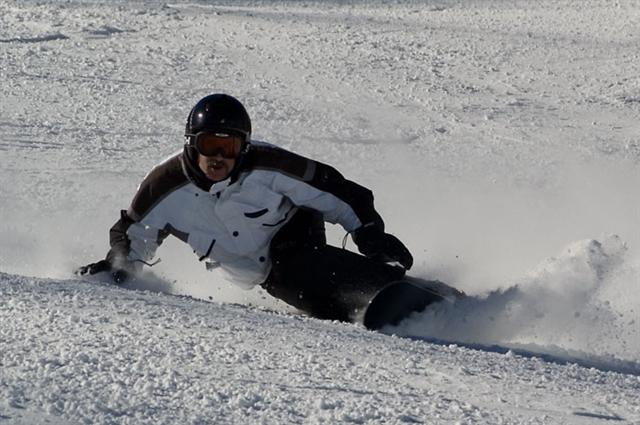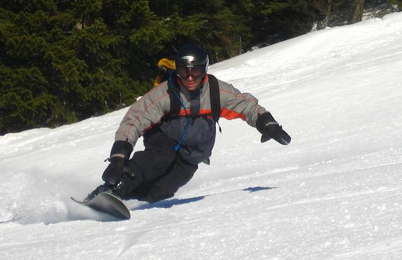 So if your heelside carve is obviously your stronger carve, try the toeside hip-drop. First you need to make sure you’re not rotating your hips slightly towards your toe edge. At a heel-to-toe transition, take your back hip (right hip for regulars, left for goofies) and bring it forward. Think about putting it just in front of your back foot. Then, drop that hip down towards the snow and into the toeside carve. Do this before any movement of your hands, head or shoulders towards the snow. Concentrate on “pencil pinching” (as mentioned in other articles here) to keep your upper body upright – that is, you should feel like you could hold a pencil in the crease that forms between your downhill hip and rib cage. Stomp the front foot to start the carve, then smoothly shift back as the carve comes around, finishing the carve with your weight about two-thirds on your back foot. When you master the hip drop and combine it with quick cross-through transitions, you’ll probably find that confidence on toeside that you’ve been enjoying on heelside all this time.